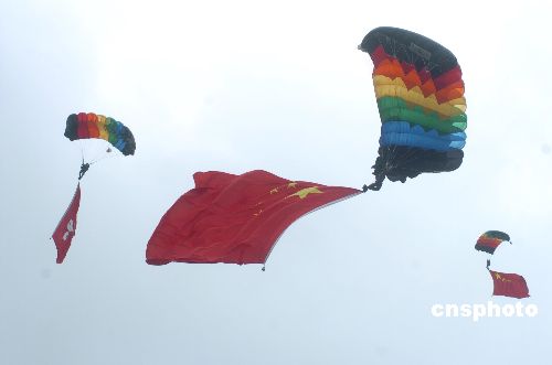 组图:解放军八一跳伞队在香港表演(2)