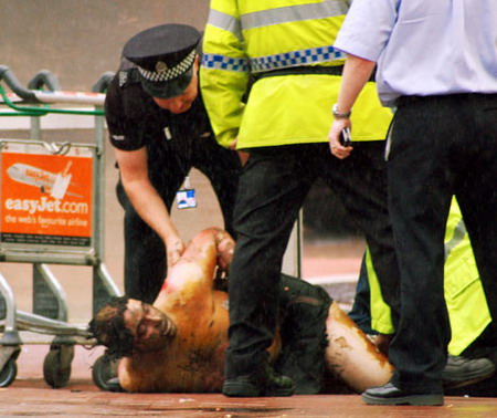 图文:英国媒体披露警方制服机场袭击案疑犯照片(3)