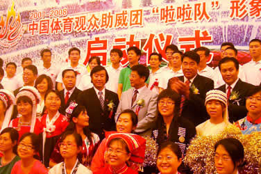 2007年6月18日上午10点,2007—2008中国体育观众助威团啦啦队形象大赛启动仪式在北京人民大会堂举行。本次大会由中国奥委会新闻委员会、国家体育总局社体中心主办、全国各省、自治区、直辖市社会体育指导中心和北京华洲国际广告有限公司承办,中国大学生健美操、艺术体操协会协办。