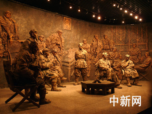 遵义会议会址,位于遵义老城子尹路96号,原系国民党二十五军第二师师长柏辉章的私邸。这幢砖木结构,中西合璧的两层楼房,建于本世纪30年代初,是当时遵义城里首屈一指的宏伟建筑,高墙垂门,巍巍峨峨。1935年1月初,红军长征到达遵义后,这里是红军总司令部驻地。1月15日至17日,著名的遵义会议(即中共中央政治局扩大会议),就在主楼楼上原房主的小客厅举行。会议室呈长方形,面积27平方米,室内陈设,基本上是当年开会时的原貌。会址大门临街,大门正中高悬巨匾,毛泽东1964年手的“遵义会议会址”六个大字,苍劲有力,金碧辉煌。