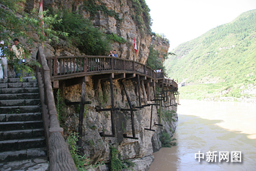 朝天明月峡古栈道遗址是四川省人民政府1991年公布的第三批省级重点文物保护单位;国务院2006年公布的剑门蜀道为全国重点文物保护单位。栈道遗址距四川省广元市朝天城区3公里,位于明月峡又名朝天峡东岸绝壁上,下临嘉陵江,是古金牛道的重要组成部分,现存栈道孔眼400多个,是遗存孔眼数量最多、分布最科学、保存最完好,最能代表古栈道风貌的古栈道遗址。文物类别为古遗址,开凿年代为战国至宋代,开凿最早的距今已有2300多年历史,国内专家称其为“与长城、运河相媲美的三大古代杰出建筑”。