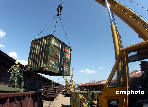 中方参演部队在满洲里开始使用俄方提供的车辆、器材,对中方装备物资进行换乘装载。