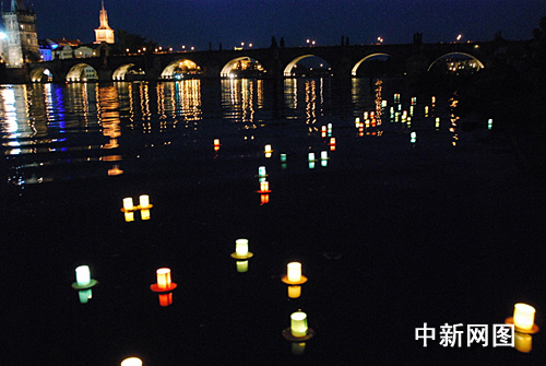 中新网8月6日电 8月5日晚上,捷克首都布拉格伏尔塔瓦河河面上飘摇起一片烛光。捷克反战组织“对基地说不”的成员在这儿放飘62支蜡烛,纪念广岛原子弹爆炸62周年。