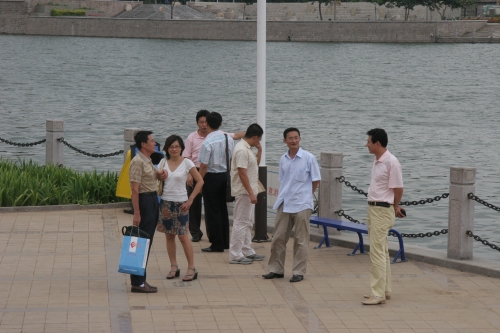 八月十五日的下午,虽然天气闷热,但仍有不少市民来到了秦皇岛经济开发区的街心公园,享受水边清凉。