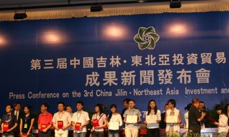 陈伟根说,本届东博会取得了丰硕成果。一是会议规模和层次创历史新高。参会客商突破5万人,其中参展商6000人,采购商1.2万人,投资洽谈商1.2万人,考察商2万人。二是商品贸易成交额直线上升。本届东北亚博览会对外贸易成交额达4.1亿美元,比上届增长6.8%,其中出口成交额3.2亿美元,进口订货0.9亿美元。国内贸易成交额12.7亿元人民币,比上届增长10%,其中销售12.3亿元,采购0.4亿元。三是投资合作取得重大突破。吉林省共签订投资项目169个,项目总投资774亿元人民币,其中引进域外资金719亿元(含国外投资250亿元),分别比第二届增加100亿元和118亿元;四是国际会议和各国商务周(日)活动成效显著。展会期间共举办东北亚经贸合作高层论坛、第三届东北亚经济合作论坛、生物化工发展战略国际研讨会等国际会议和商务周(日)等活动24个,参会客商借助东北亚博览会平台,实现了政府间、团体间、企业间的直接交流。