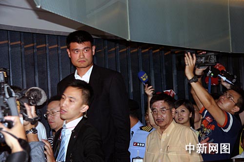 大陆著名篮球运动员、NBA巨星姚明今天下午抵达台湾,展开为期三天的交流访问之旅,让台湾球迷可以一睹巨星风采,当晚前往台北一○一大楼参观。