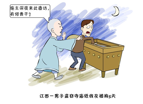新闻浮世绘:江西一男子盗窃寺院内的纸钱灰被拘