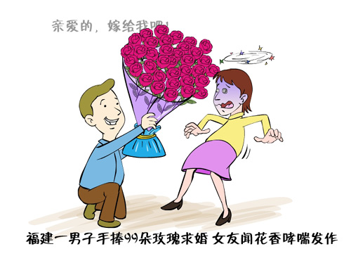 新闻浮世绘:福建一男子手捧玫瑰求婚 女友闻花香哮喘发作