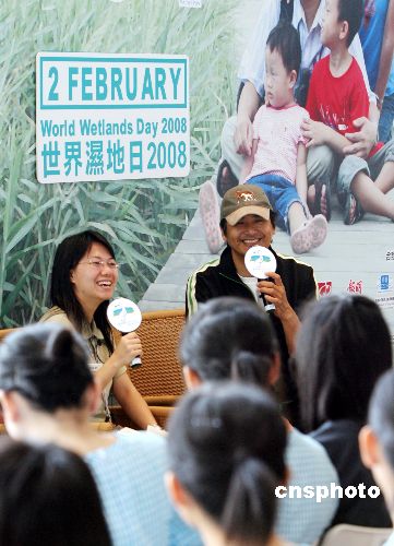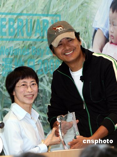十月二十日,国际影视巨星周润发在香港湿地公园举行的世界湿地日2008香港区庆祝活动启动仪式上,获颁湿地保育大使委任状。中新社发 武仲林 摄