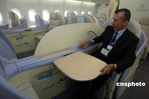 10月26日,参观空中客车A380飞机的北京民众被其豪华舒适的客舱所吸引。当日,一架生产编号为007的空中客车A380客机停靠在北京首都国际机场N104机位,接待北京媒体及部分嘉宾的参观。此次A380中国大陆之行为期一周,包括广州、上海及北京三个城市,这是A380飞机2007年环球飞行之旅的重要部分。中新社发 杨影懿 摄