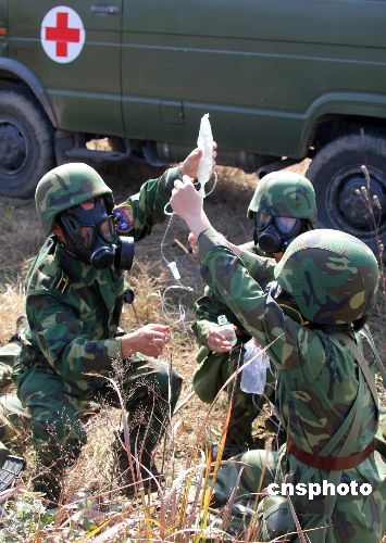 卫勤分队进行战场救护。