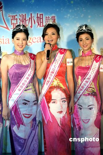 三十日,今届亚洲小姐冠军张家莹(中)、亚军崔智熹(左)、季军孙辰出席香港金涛汽车集团赞助小跑车赠送活动。自十月二十八日晚亚洲小姐决赛后,新鲜出炉的亚洲小姐们连日紧锣密鼓展开系列活动,展开她们美丽的人生。中新社发 王丽南 摄