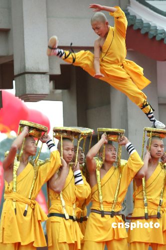 十月三十日,中国(莆田)南北少林武术公演盛会在莆田南少林寺隆重举行。中新社发 张勤 摄