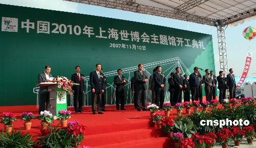 十一月十日,中国2010年上海世博会永久性场馆——世博会主题馆正式开工建设。此举标志着上海世博会永久性场馆建设进入全面推进阶段。这一主题馆地上建筑面积为八万平方米,地下建筑面积为四万平方米,建设周期约为两年。主题馆项目位于上海世博会规划围栏区浦东区域、“世博轴”西侧,毗邻规划中的磁悬浮世博园站。中新社发 许晓青 摄