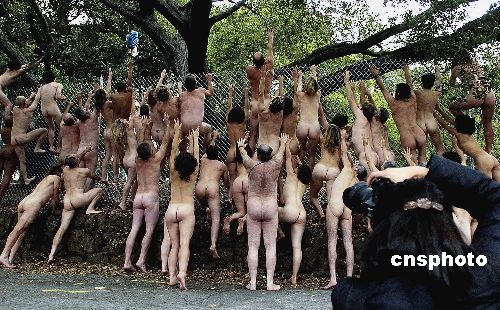 人体艺术摄影家组织百名志愿者裸体呼吁环保(图)