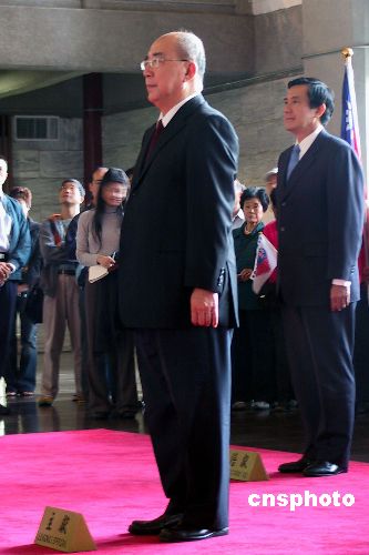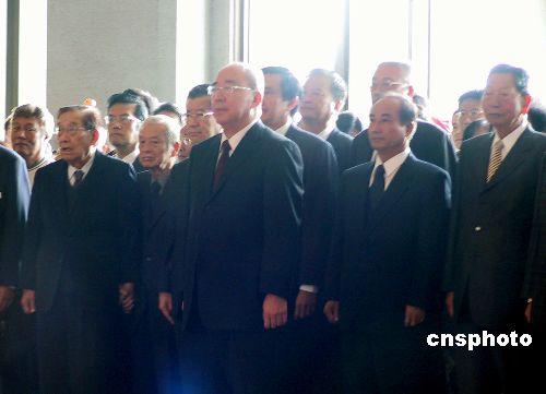 十一月十二日,中国国民党主席吴伯雄率同马英九、萧万长、王金平等党内人士前往台北“国父纪念馆”献花,纪念孙中山先生诞辰一百四十一周年。中新社发 刘舒凌 摄