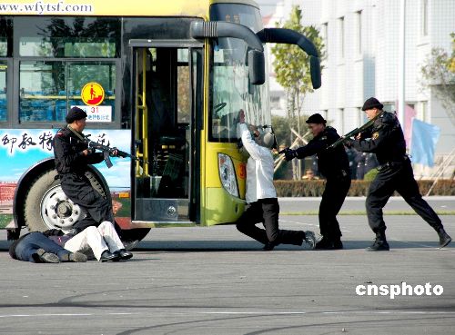 11月12日,山东潍坊公安机关苦练基本功暨反恐演练汇报表演在该市警官培训基地举行,内容包括队列分列式表演、警务各项技能表演、多警种联合反恐作战演练等三项内容。中新社发 田源 摄