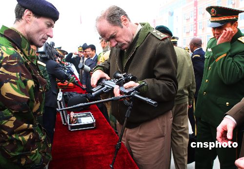 日本驻华武官参观中国反恐特种部队武器装备。