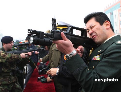驻华武官参观中国武警部队武器装备。