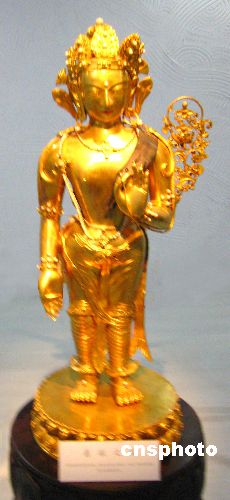 由乾隆督造,各族艺匠合力制作,代表了清代宫廷造像工艺最高水平的金观音菩萨立像。