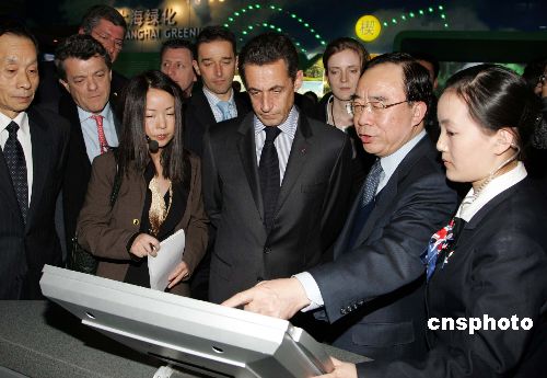 萨科齐听取上海2020年城区规划及世博会场馆规划情况介绍,对上海轨道交通很感兴趣。