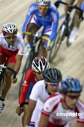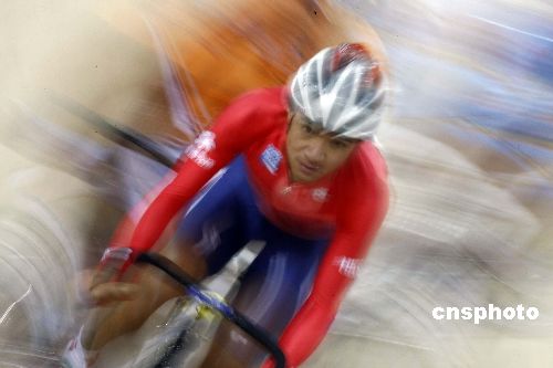香港选手黄金宝参加国际自盟场地自行车世界杯男子记分赛。中新社发 盛佳鹏 摄