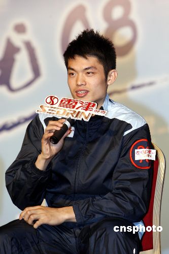12月14日,某啤酒品牌在北京签约世界冠军李小鹏、肖钦、林丹和李永波为代言人,在新闻发布会上,几位冠军畅谈奥运。中新社发 杜洋 摄