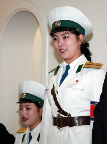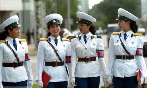 女交警是平壤一道亮丽的风景线,她们都是亭亭玉立、正值妙龄的未婚女青年,年龄从16岁到26岁不等,体貌端正、聪颖健康,身高不低于1.65米,是在众多高中毕业生中精心挑选出来的优秀人才。她们站在十字路口中央,手拿交通指挥棒,眼睛注视着川流往来的车辆,迅速敏捷地指挥着交通,着实一幅巾帼不让须眉的飒爽英姿,不禁令人眼前一亮。
