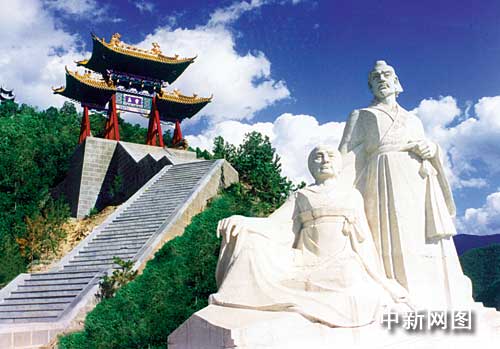 介之推母子塑像塑像高9.9米,寓意1999年落成。该像造型古朴典雅,形象逼真,生动地再现了介之推母子的气质和神韵,是绵山的标志,也是介休的标志,在108国道上遥望可见。