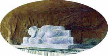 钟祖洞:钟离权,又称汉钟离,坦胸露腹,大眼睛,红脸面,头上扎着两个丫髻.他为汉时将军,兵败后逃至山谷,遇东华先生传他金丹火候,金科灵火,又往崆峒山访道。太上老君身骑青牛,手执宝扇,立于面前曰:“普济渡世,绵山养功。”钟离来到这里,见紫气缭绕,故在此洞中修行,终于练成八段锦道功。后又往返于崆峒山、绵山两地,普济众生。八段道功集治病养生为一体。