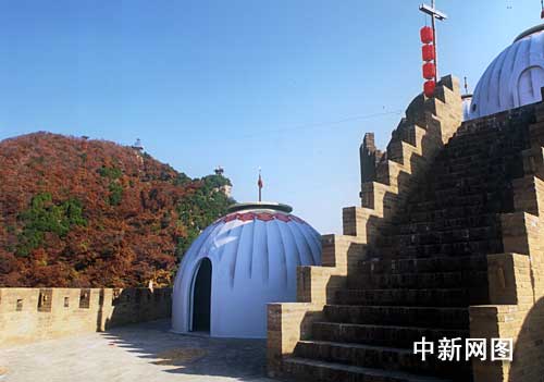 傍晚时分,一串串号灯彤红高悬,帅旗、战旗、旌旗猎猎。偶尔传来几声战马嘶鸣和几声清脆的巡营梆鼓。龙头寺吊桥门,一夫当关,万夫莫开,李世民的千军万马当年均由此入营,森严壁垒,固若金汤。唐营观夕照:当日落西山时,一轮红日红艳欲滴,举手可揽。在此拍照留影,如双手捧日。落日的余晖里,火烧云天边斜挂,苍山如海,残阳如血,真是神灵造化,天下奇观。