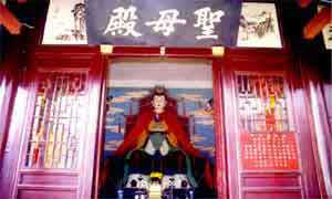 圣母殿:在绵山后山的山中,自古以来就盛产猕猴桃,绵山圣母每年都要举办猕桃会。这一年,又逢猕桃会,王母娘娘率领众女神向绵山方向飞来。当来到绵山地界时,突然看到在炎炎烈日下,有一群向绵山朝拜的男女老少因中暑倒在地上昏迷不醒。王母看到这种情景,顿起怜悯之心,便化作一位慈眉善目的老婆婆,走向人群,伸手化来一碗圣水,让众人喝下。众人喝后,马上清醒过来。大家用惊异的目光注视面前这位老者,只见她化作一缕清烟升上天空。众人这才知道是王母带着众位女神解救了她们,便向着他们飞去的方向深深地拜三拜。其中有太原、榆次、祁县、太谷、平遥、灵石、孝义、长治、泌源、霍县、赵城、临汾、离石等地的善男信女。消息不翼而飞,大家纷纷捐资,在绵山修建了圣母殿,并立碑记载。圣母殿中央供奉王母,又称瑶池金母,为女仙之宗。右侧为泰山圣母,全称为“泰山碧霞元君”,是泰山东岳大帝的女儿,当地群众称之为“泰山娘娘”,是管妇女生育,保护儿童健康平安的女神。还有骊山老母、金灵圣母、眼光娘娘和注生娘娘。左侧为九天玄女,地母娘娘、送子娘娘和保生娘娘。