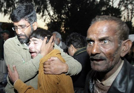 中新网12月27日电 据法新社报道,巴基斯坦前总理贝-布托今日在竞选集会上遭到炸弹袭击,不治身亡。图为贝-布托支持者悲痛万分。(关新)