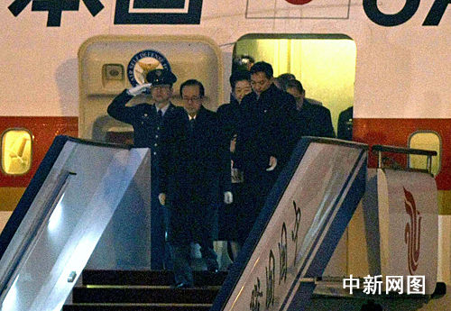 12月27日,日本首相福田康夫今日下午乘飞机抵达北京,开始对中国进行正式访问。中国外交部副部长武大伟到机场迎接。盛佳鹏 摄