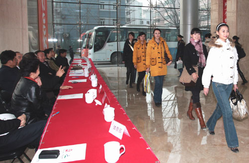 北京奥运颁奖礼仪志愿者"受审" 美女秀微笑(图)(2)