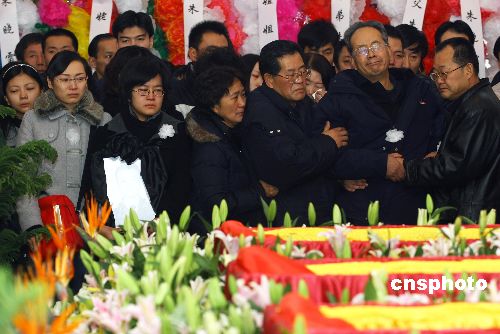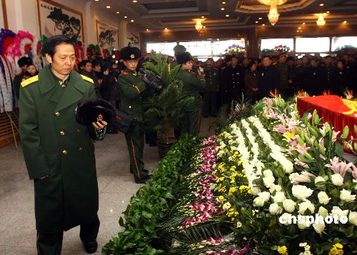 一月七日,在“1.2”乌鲁木齐德汇国际广场大火中牺牲的三位消防官兵追悼会在该市殡仪馆举行,新疆各界人士及三千余辆出租车、万余市民自发为三位烈士送别。公安部已批准在扑救火灾中深入火场搜救被困者不幸因烟气中毒壮烈牺牲的乌鲁木齐消防支队官兵朱晓雷、张宇、高峰三人为“革命烈士”。中新社发 刘新 摄