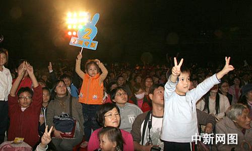 一月十日晚,台湾“立委”候选人周守训造势晚会上,不少儿童也热情参与。 作 者:孙自法