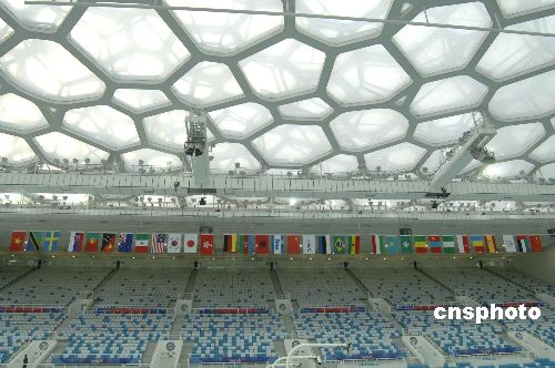 1月28日,位于北京市北四环的北京奥运会标志性场馆、北京的新地标之一——国家游泳中心(“水立方”)竣工并交付使用。经过参建各方4年多的努力,国家游泳中心完成了奥运建设工作,梦幻般的水蓝色建筑即将投入“好运北京”赛事使用。国家游泳中心在国内首次采用ETFE气枕结构,是世界上建筑面积最大、功能要求最复杂的膜结构系统。中新社发 徐曦弋 摄