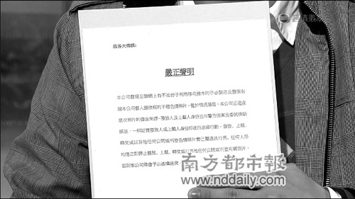 英皇公司发出的声明.