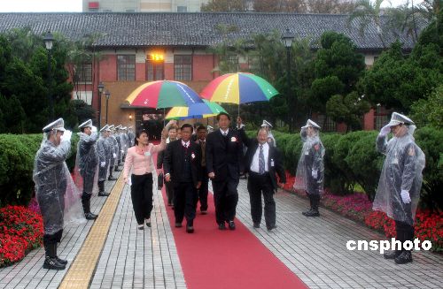 台湾数十位脚登高筒皮靴的警官冒雨列队在“立法院”内红地毯两侧迎接台湾第七届“立法委员”前来办理报到并宣誓就职。