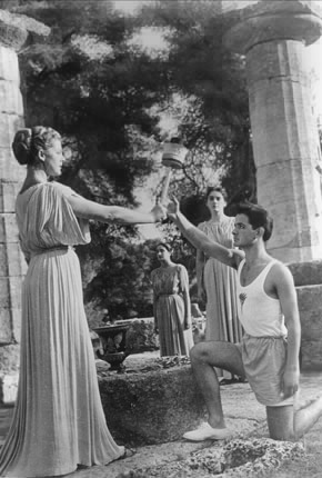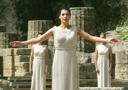 在现代奥运会中,奥林匹克圣火是人类价值的重要象征,也是人类与火息息相关的重要表现。正如当年宣布“神圣休战”的传令兵,今天的火炬手,手持奥运会火炬,传递奥林匹克圣火,鼓励全世界为了奥运会放下武器。选择奥林匹亚作为奥运会火炬接力取火仪式的举办地,象征着奥林匹克的伟大传统和古代奥运会和现代奥运会之间紧密连接和奥运圣火的纯洁。到目前为止,一共举办了16届夏季奥运会火炬接力活动。所以,在2008北京奥运上女祭司将不仅仅是把奥运圣火和火炬在世界范围内传播,更是把奥运精神从奥林匹亚带向世界。