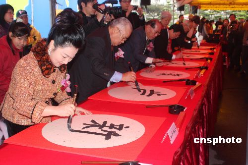 图:台湾举办新年开笔大会 三千人参加书法挥毫