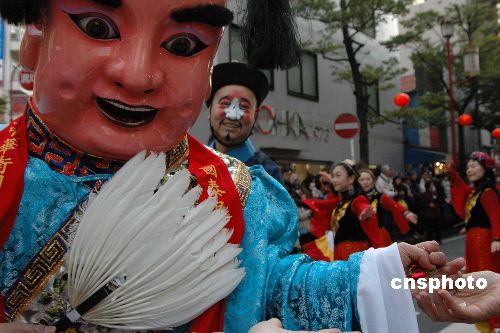 图:横滨中华街举行庆新春彩妆游行(2)
