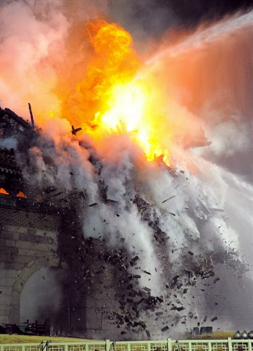韩国第一号国宝“崇礼门”烧毁塌落损失惨重(图)