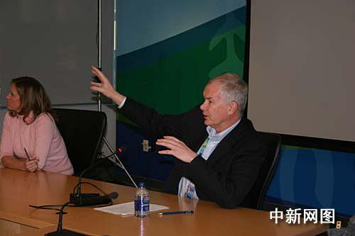 温哥华冬奥会行政总裁约翰·弗朗向来自世界各地的记者介绍筹备进展情况。中新社记者 吕振亚 摄