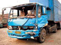 据张先生告诉记者,本月6日早上,他公司的一辆厢式货车在行至丰台四环时发生交通事故(见图),由于他公司的这辆车违法变道,导致一辆大货撞上了他的车。交警经过勘查,认定张先生一方负全责。警方联系了新通救援负责拖车。