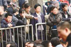 “带头大哥”、“带头大姐”们场外坐镇指挥票贩插队。