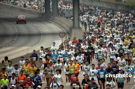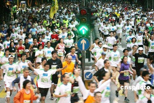 组图:香港马拉松开赛 曾荫权主持开跑仪式(2)