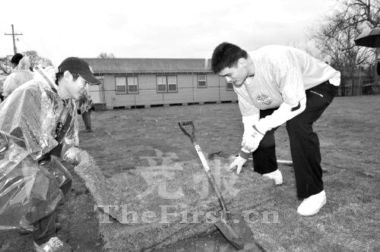 日前,功夫巨星李连杰与中国球员姚明一起出席了美国NBA全明星慈善活动,参加了新奥尔良巨星城的慈善植草皮活动。