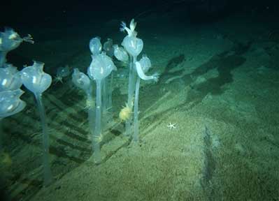 澳大利亚科学家2月19日发布的照片显示的南极洲大陆架600米深处的珊瑚及其它生物。三艘南极科考船结束了南极海域夏季考察活动,返回澳大利亚。